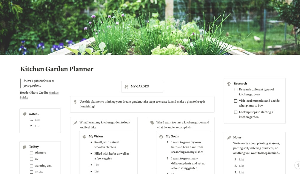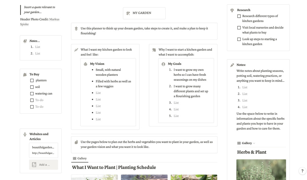 Kitchen Garden Planner | Notion Template | Planner for Garden